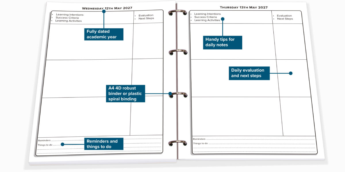 Over the past few years we have been asked, do we sell individual planners and now we can say yes! Our online teacher planner has all the same features as the primary teacher planner but without the personalisation. Choose from a range of coloured covers pop it in your basket and order online. All online teacher planners come in a ring binder only.